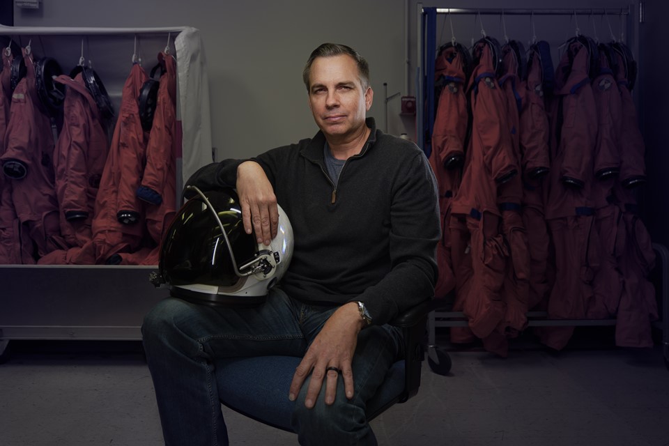 ヒューストンの NASA ジョンソン宇宙センター内 OCSS ラボに座る、ダスティン・ゴーメルト(オリオン乗組員生存システム(OCSS)マネージャー)。